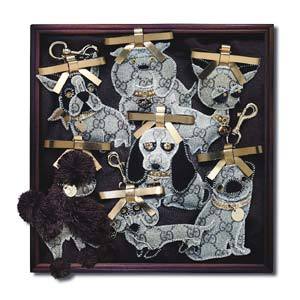 如今各家名牌紛紛跟進,最常見的手法是直接將品牌英文縮寫字母當作吊飾,古馳(Gucci)今年秋冬的狗形吊飾,則以帆布GG Logo帆布搭配黑色毛呢料組成,而且每隻都有金色皮圈和刻有GUCCI商標的金屬徽章,掛在包上增添時尚感。 【2008/06/11 聯合報】