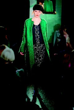 繫上皮帶的高腰連身洋裝,骨董珍珠項鍊和貝蕾帽,魅力天成。另外,柔軟、單肩式的長禮服和絲料以金屬片裝飾的長洋裝,則延續Vera擅於營造上流社會的優雅性感。 【2008/07/24 聯合報】